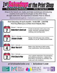 The Valley Arts Newsletter is a weekly newsletter published on Tuesdays with listings for art shows & events, craft fairs & pop-ups, calls for artists, art classes, studio space, and art/ist crowdfunding. Listings are submitted by our readers and are focused on the visual arts in the Pioneer Valley area of western Massachusetts (Hampden, Hampshire, and Franklin counties). See the Submissions page for details about submitting your listing. Listings are free!